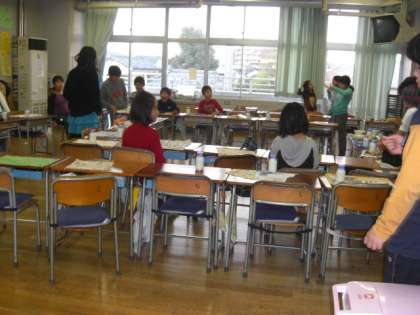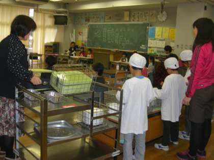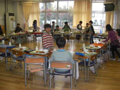 学級によって、今日は、輪になって給食をとるクラスが多くありました。こうして友達の顔を見て食べると、またちょっと違う気分になりますね。