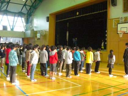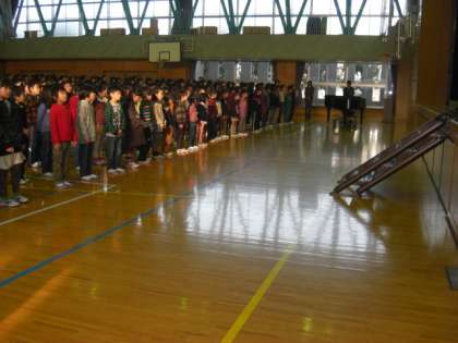 今日は、3学期の始業式がありました。校長先生から、めあてをもって努力をしていきましょうというお話がありました。2年生と6年生の児童代表の言葉の後、校歌を歌いました。