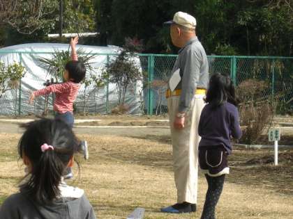 今日1年生は、地域の方においでいただき、むかしあそびを教えてもらいました。はじめに竹トンボとぶんぶんごまを全員で教えてもらいました。そのあと、けん玉、空気でっぽう、紙飛行機飛ばしも加え、自分が教えてもらいたい所に行って教えてもらいました。やさしく上手に教えてもらったので、とても楽しく練習ができました。