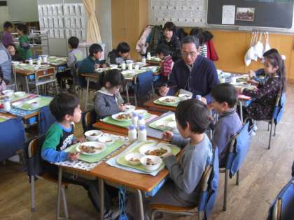 いらしていただいた方にいっしょに給食を食べていただき、交流しました。