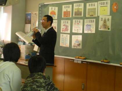 東京税理士会北沢支部の方々においでいただき、税金について教えていただきました。はじめにDVDを見せていただきました。そのあと、お話を聞きました。税金の意味を教えていただきました。また、一人ひとりの払った消費税がどのようにして国民のために使われていくのをわかりやすく教えてもらいました。国民の選んだ国会議員によって国会で話し合われ使い道が決まることから、みんなが税金の使い道について考えていかなくてはいけないことがわかりました。最後に質問をしました。お忙しい中クラスごとに教えていただきました。「どのクラスもお話をよくきいていました。」とおほめの言葉をいただきました。税理士会北沢支部の皆さまありがとうございました。