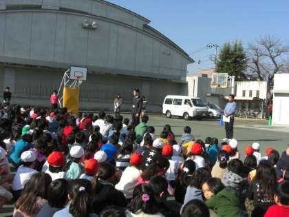 今日の避難訓練は、不審者対応の訓練でした。子どもたちは、先生の指示に従ってスムーズに避難することができました。終了後校長先生から、行動の仕方について教えてもらいました。