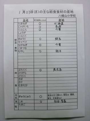 1月23日給食食材産地