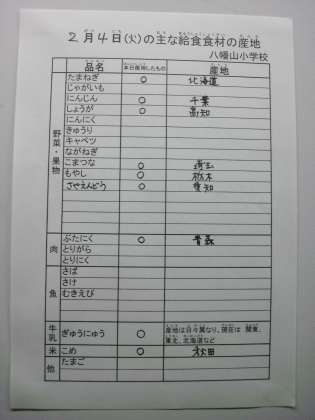 2月4日の主な給食食材の産地です。