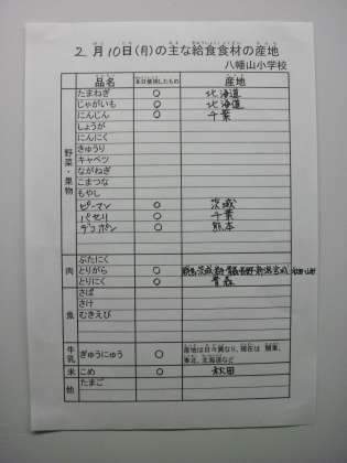 2月10日の主な給食食材の産地です。