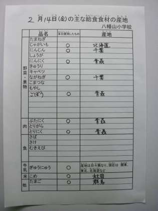2月14日の主な給食食材の産地です。