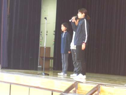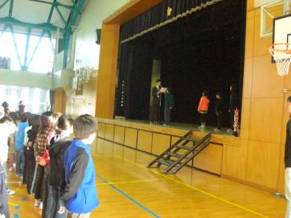 校長先生のお話は、インフルエンザ予防についてでした。しっかりとした体を作って、できるだけインフルエンザ等にかからないようにしようとのお話です。しっかり食べる、しっかり体を動かすなど、健康になるようにすることも大切だとのお話でした。