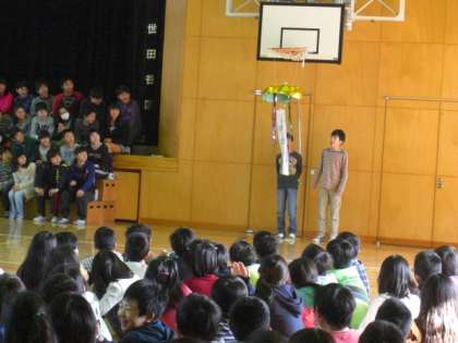 そのあと、全校ゲームです。6年生のアンケートを元にした3択クイズでした。クイズをしているうちに、6年生のことがわかってきました。