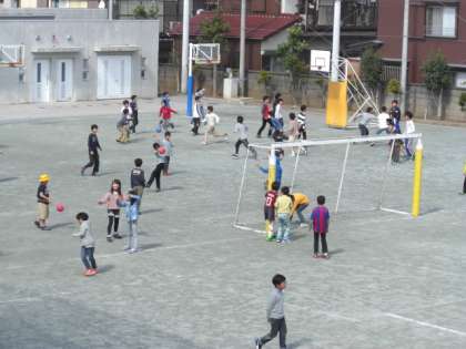 今日は、わくわくデーでした。中休みにたくさんの子どもが遊んでいました。先生方も校庭に出て子ども達といっしょにすごしました。