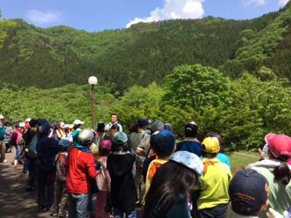 宿舎の方の案内で、里山体験の始まりです。東京では味わえない大自然を