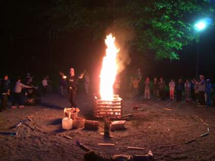 キャンプファイヤーの始まりです。盛り上がっていきま〜す!