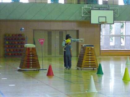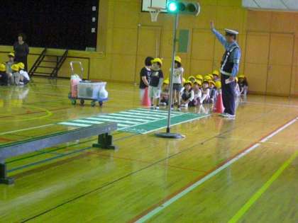 成城警察署の方にいらしていただき、1年生は、道の歩き方を教えてもらいました。横断歩道や「とまれ」の標識のある道の渡り方など、模型の信号や横断歩道を作ってある場所を通りながら教えてもらいました。いつも交通ルールを守って、交通事故にあわないようにしてほしいです。