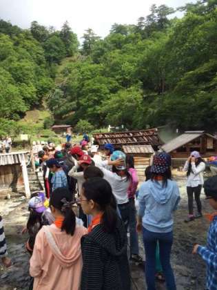 湯ノ湖畔の源泉にやってきました。温泉が湧き出ています。イオウのにおいもなかなかなものです。
