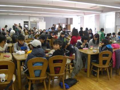 遊び場開放運営委員会の冬イベントとして、もちつき会が開かれました。地域の方や、おやじの会そして遊び場開放の方が協力して行われました。前日に雪が降ったこともあり、大勢の方が参加していました。今年度は、おやじの会の方が、避難所で使用する、鍋とバーナーを使って豚汁を作りました。