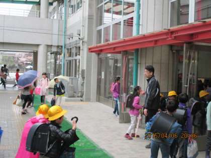 1年生は昨日の入学式の後、初めての登校となりましたが、あいにくの雨。大きなランドセルを背中に、手荷物や傘もあって大変でした。しかし、ここでも6年生が玄関でお出迎えをし、困っている1年生を手伝っていました。教室でも、6年生が荷物の片づけなどのお世話し、連日いろいろなところで大活躍です。(副校長)