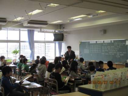 各学年各クラスで、学級開きをしました。4年生の教室では、8時25分に全員着席して、担任の先生のお話を聞く姿勢になっていました。5年生の教室では、新しい教科書が配られていました。6年生は、静かにプリントに取り組んでいました。(副校長)