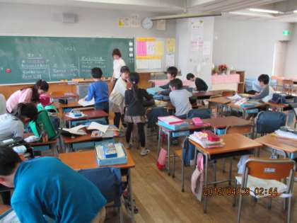 1年生以外は、今日から午後の授業がありました。6時間目が終わって、3年生はちょっと疲れた様子でしたが、5分ですばやく帰りの支度をしていました。さすが5年生は、担任の先生の話を、最後まで背筋の伸びたよい姿勢で聞いていました。3年生の男の子が、自作の塗り絵をプレゼントしてくれました。(副校長)