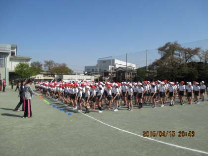 今朝の集会は体育朝会です。1年生も参加して「集団行動」を行いました。6年生がお手本になって、「気をつけ、前へならえ、休め」などの基本動作を確認しました。教室に帰る時の行進も上手にできました。