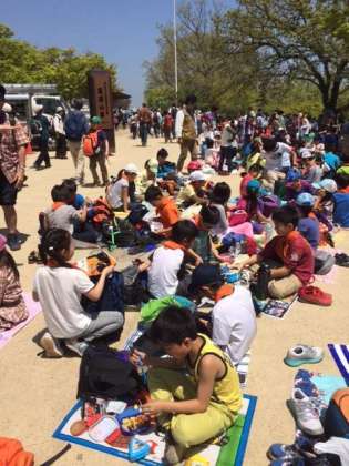たくさん歩いた後は、お待ちかねのお弁当タイムです。それにしても、すごい数の小学生です。