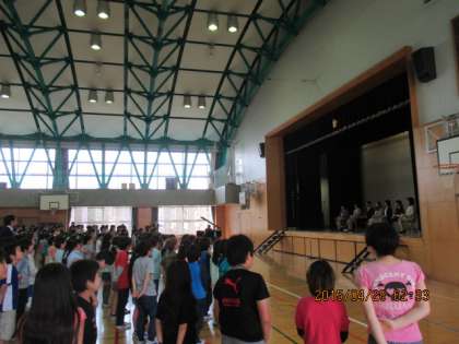 子どもたちは、『グッデイ・グッバイ』の歌にのせながら、先生との思い出を呼びかけにして伝えました。体育館が感動の渦に包まれる中、最後に全員で校歌を歌いました。子どもたちは列を作って、退場する先生方を見送りました。               その後、縁のある子どもたちがいる教室に、それぞれの先生方が回って、子どもたちに励ましの言葉を投げかけてくれました。感謝の思いと感動でいっぱいの、心温まる1日になりました。