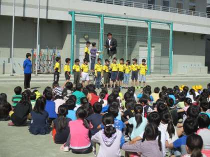その後で、スポーツで活躍した子どもたちの紹介と表彰を行いました。いろいろな場面で活躍のできる八幡山小の子どもたちです。思いやりの心を忘れずに、今週も元気に過ごしましょう。