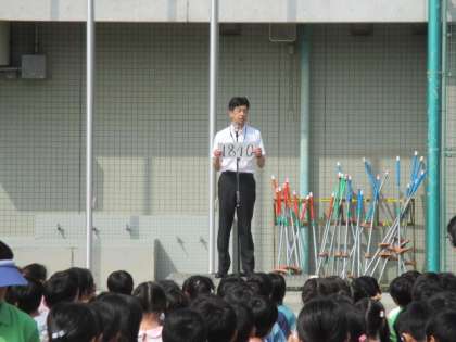 今朝も8時30分までに全校児童が集合し、チャイムと同時に全校朝会を始めることができました。校長先生からは、春の交通安全週間の話がありました。毎年、たくさんの子どもたちが交通事故に巻き込まれていること、事故が多い時間帯に交通ルールをしっかり守ることなど、毎日安全に登下校するために必要な話題でした。先生たちは、八幡山小の子どもたちの安全をいつでも願っています。