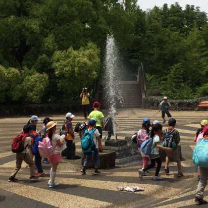 11時ちょうどに噴水が上がり、子どもたちは大はしゃぎです。けっこうぬれちゃったかな??