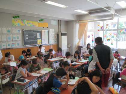 中休みに、今年度最初のなかよし学級のリーダー会がありました。担当の先生から活動の流れについての説明があり、6年生のリーダーたちは真剣に聞いていました。頼もしい6年生、頼りにしていますよ。