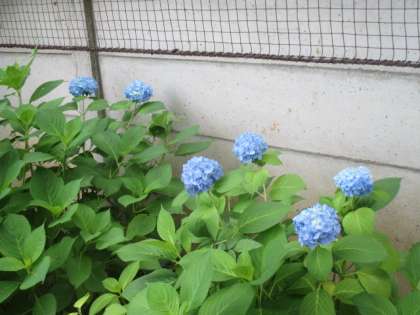 校庭の植え込みの紫陽花(あじさい)が、きれいに咲いていました。昨日の雨で花が開いたようです。6月になり、いよいよ梅雨の季節に入ります。