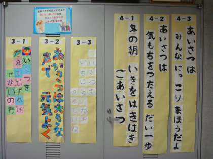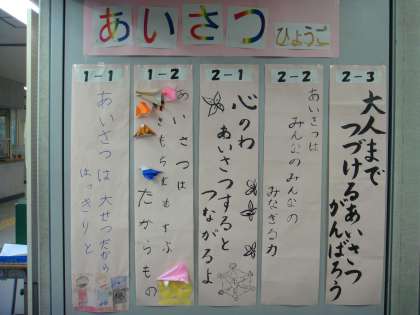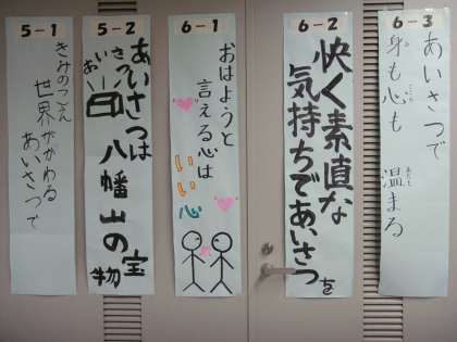 八幡山小恒例の「あいさつ標語」各学級で考えた標語はなかなか傑作です。