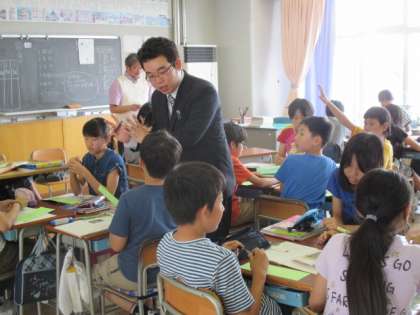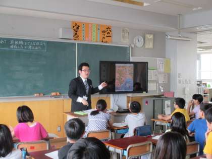 教育実習生の最後のまとめの授業が、3校時に行われました。この3週間で4時間社会科の授業を受け持ち、今日はそのまとめ「武士の政治が始まる」の単元でした。貴族の社会から武士の社会に移り変わる時代背景や因果関係を、地図や資料集を活用しながら考えさせ、授業を進めていました。子どもたちも積極的に手を挙げて発言して、活気のある授業になっていました。