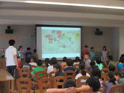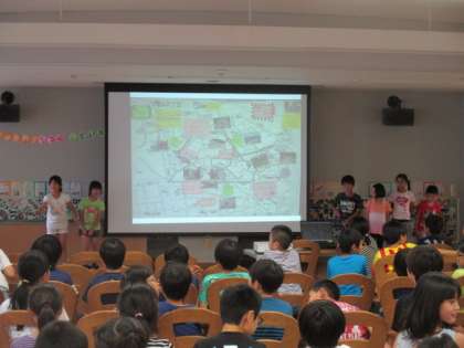 明日土曜日に、4年生は地域安全マップの発表会をします。今日はそのためのリハーサルを、ランチルームで行っていました。5月にみんなで校外学習に出かけ、グループで協力してまとめました。明日の本番が楽しみです。