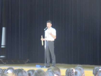 今朝の全校朝会では、校長先生から食育のお話がありました。世界各国で食事のマナーがあることや、日本では箸の使い方やお椀の持ち方などにもルールがあることなど、食について考えながら、毎日の食事に感謝していただくことを学びました。季節の変わり目で体調を崩しやすい時期ですが、モリモリ食べて今週も元気に過ごしましょう。