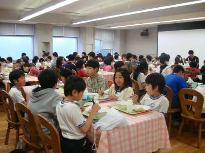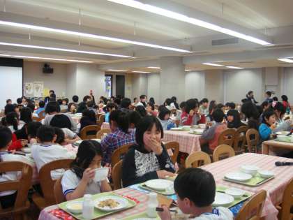 今日は6年1組と2年生のお別れ給食。楽しそうに食べていました。