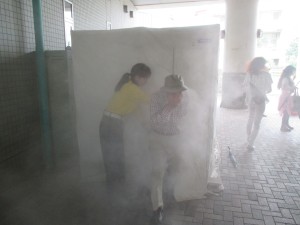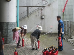 その他にも、消火器を使った初期消火訓練や煙中避難訓練などの体験をしました。地震発生後の火災は、大きな被害につながる一つの要因になります。身近にある消火器も、使い方を知らなければ意味がありません。もしもの際に、慌てないで落ち着いてできるかは、経験がものを言います。