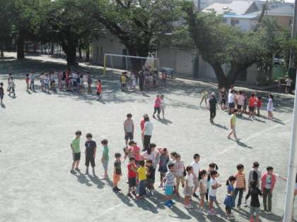 今朝の児童集会は、なかよしタイムです。各班でリーダーを中心に、みんなで取り組める遊びをします。天気がよかったので、全ての班の児童が、全員校庭に出て活動しました。18の班が、校庭いっぱいに広がって元気に遊びました。