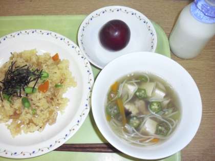 「みかん寿司、七夕汁、プラム、牛乳」です。