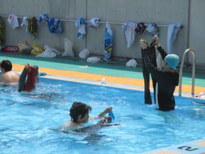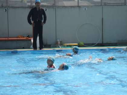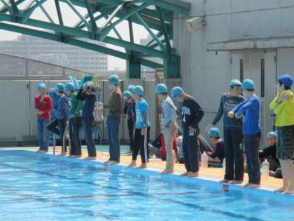 夏晴れの土曜授業日、6年生は着衣泳を行いました。水難事故に遭遇した時の対処方法や心構えを学び、実際に衣服を身に付けた状態で泳ぐなどの経験をしました。今日の授業で、自分や他人の命を守るためのさまざまな術を知りました。しかし、何よりも、そんな事故に遭わないよう、日頃から気をつけていくことが大事であると思います。夏休みを前に、6年生はとてもよい体験ができました。
