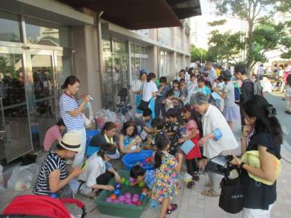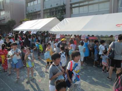 青少年上北沢地区委員会の主催による、「こどもまつり」が上北沢小学校で盛大に行われました。各町会や自治会の協賛をいただき、スイカ割りやヨーヨー釣りなど、さまざまな模擬店やゲームなどが出展されました。八幡山小学校のPTAの方々も模擬店を出店し、イベントを盛り上げていただきました。上北沢小の子どもたちと八幡山小の子どもたちが祭りを通して交流し、楽しい夏の午後のひとときでした。