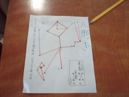 4年生は理科の授業で、夏の星座の勉強をしています。2組では、ワークシートの星をつないで、オリジナルの星座を作って紹介していました。「きのこ」や「紙飛行機」など、とてもユニークな星座の登場に、見ている友だちも感心して、食い入って発表を聞いていました。楽しい理科の授業の1コマでした。