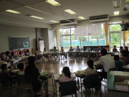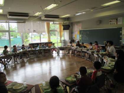 1学期の最後の給食は、「ジャージャー麺」に「ずんだもち」。暑い夏にぴったりのメニューでした。6月から校長先生は、各クラスに行って子どもたちと一緒に給食を食べていましたが、1学期最後は2年1組にお邪魔しました。みんなで輪になっていただき、楽しい給食のひとときになりました。9月まで八幡山小の給食ともしばらくはお別れです。