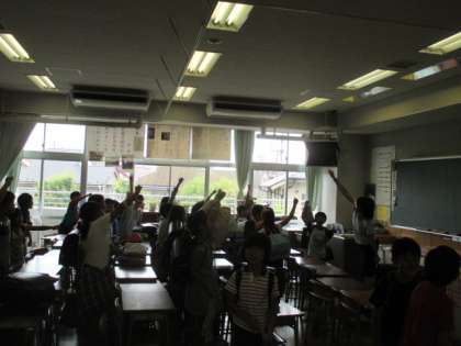 1組は昨日に引き続き、教室の掃除をみんなで協力していました。そして、今年替わった担任の先生からの初めての通知表。先生からはどんな話があったのでしょうか。いつも厳しい先生からやさしく声をかけてもらい、少しホッとした子も多いのでは。2組では、「さようなら!」のあいさつの後、みんなで2組の団結を表すエールをあげていました。それぞれに思い出の残る1学期最終日でした。