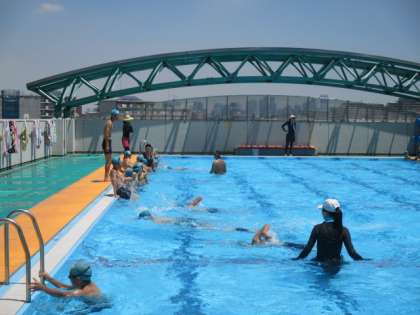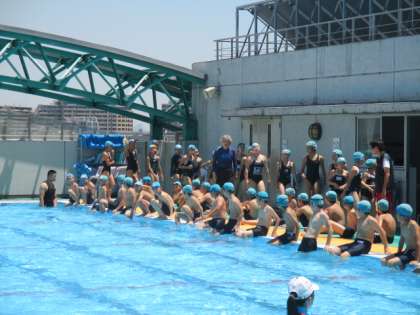 日曜日に関東地方で梅雨明け宣言がされ、夏本番で今年の夏休みがスタートしました。初日から、八幡山小学校のプールでは、たくさんの子どもたちが、元気に夏季の水泳指導に参加しました。1回目の低学年75人、2回目の中学年67人、3回目の高学年63人、合計205人でした。指導する教員の他にも、何人もの先生方が飛び入りで指導に当たり、大変賑やかな初日の水泳指導になりました。明日は、高学年→低学年→中学年の順番で指導があります。間違えないようにしてくださいね。