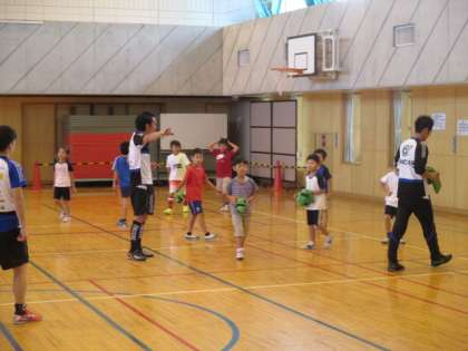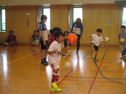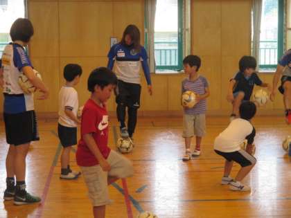 地域体育館では、世田谷の女子サッカーチーム「スフィーダ世田谷FC」の選手とコーチに来ていただき、『チャレンジ☆サッカー』と題して、楽しいサッカーに取り組みました。プロの技を目の当たりにし、選手の皆さんは、子どもたちのレベルに合わせて、やさしく声をかけたり、時に本気になってプレーもしてくれて、どの子も満足そうでした。