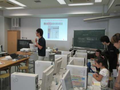 図書室では、パソコン教室が開講されました。今年は『きみも名刺名人&セキュリティ講座』と題し、ワープロソフトを使っての名刺作成に加えて、パソコンのセキュリティについての講義もしていただきました。小学生でも分かりやすく説明していただき、2時間集中して活動できました。