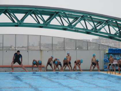 今日も朝から元気にセミが鳴いています。暑い1日になりそうです。夏休みの水泳指導も5日目。今日も3回でおよそ160人の児童が参加しました。こんな暑い日のプールは最高です。みんな気持ちよさそうにシャワーを浴びていました。