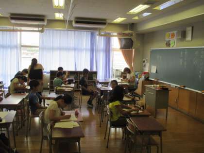 日光林間学園を前に、6年生は3日間の補習授業を行いました。楽しい思い出を作るためにも、しっかり1学期の勉強の復習をして、気持ちよく3日間過ごしてきたいものです。参加した児童は、黙々とプリント学習に取り組み、担任の先生方に分からないところは質問していました。やることをやって、すっきりと晴れやかに日光へ出発ですね。