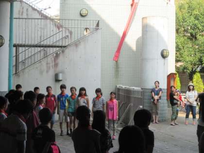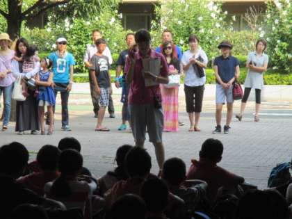 代表の児童からは、この3日間の思いと決意が述べられました。3組の神田先生からは、3日間楽しく過ごすために大事なこととして、「あいさつ、返事、笑顔」を忘れずにというアドバイスがありました。最後に、この日光林間学園のスローガン、『学ぼう歴史、挑戦しよう文化、感じよう自然、笑顔あふれる3日間』を全員で叫んで、出発です。