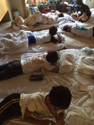 昨夜は、雨のため予定されていたキャンプファイヤーを急遽変更して、きもだめしを行いました。今日はできるかな。