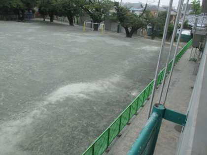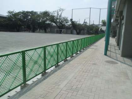 夏休みに行う予定の改修工事。防護柵の取り付けは完了し、準備が整いました。今週には、本工事が開始される予定です。きれいになった校庭が使用できるのは、8月の半ば過ぎからです。お楽しみに。